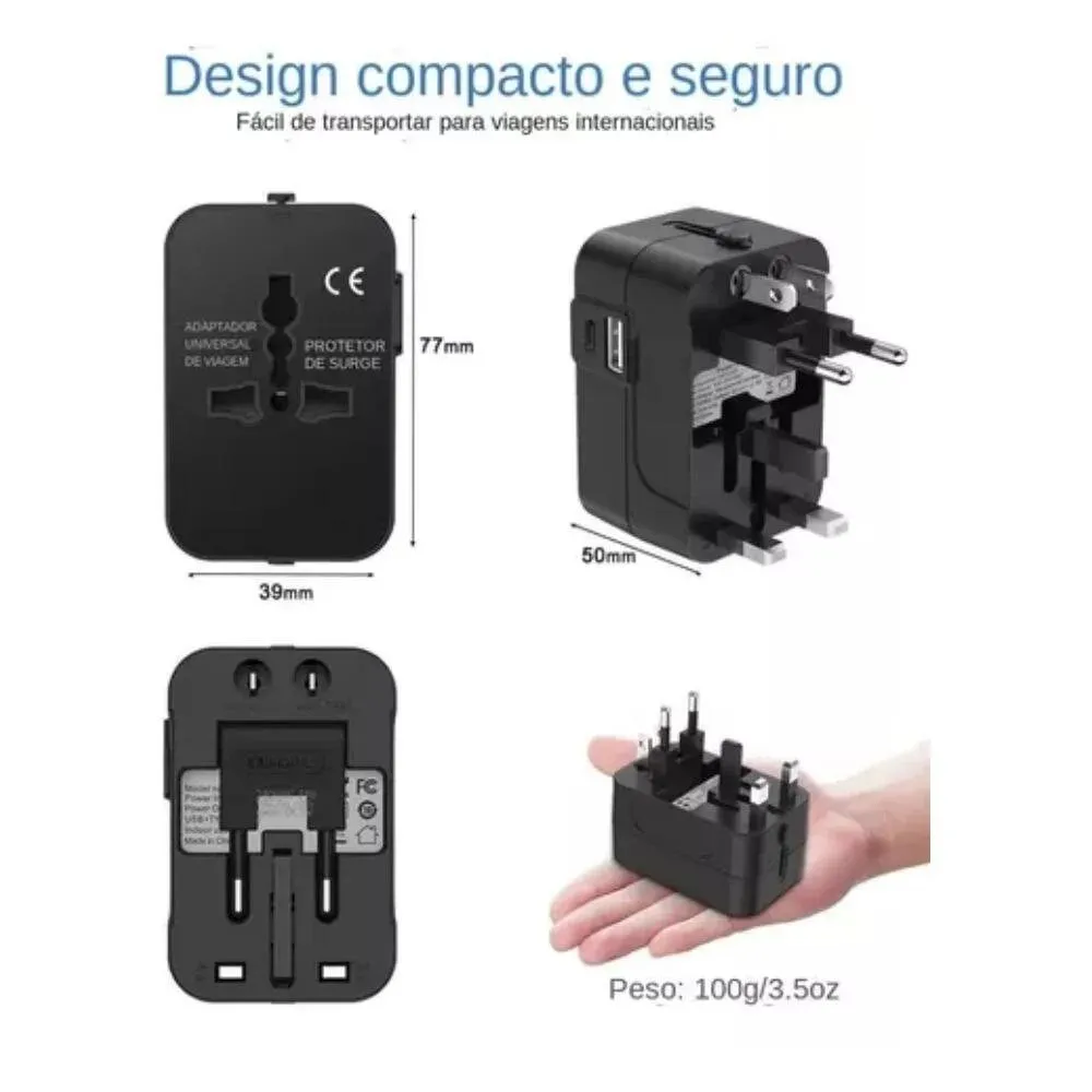 Adaptador de tomada desenvolvido para permitir a conexão de dispositivos eletrônicos em diferentes padrões de tomadas, oferecendo praticidade no uso em ambientes com variação de plugues elétricos.