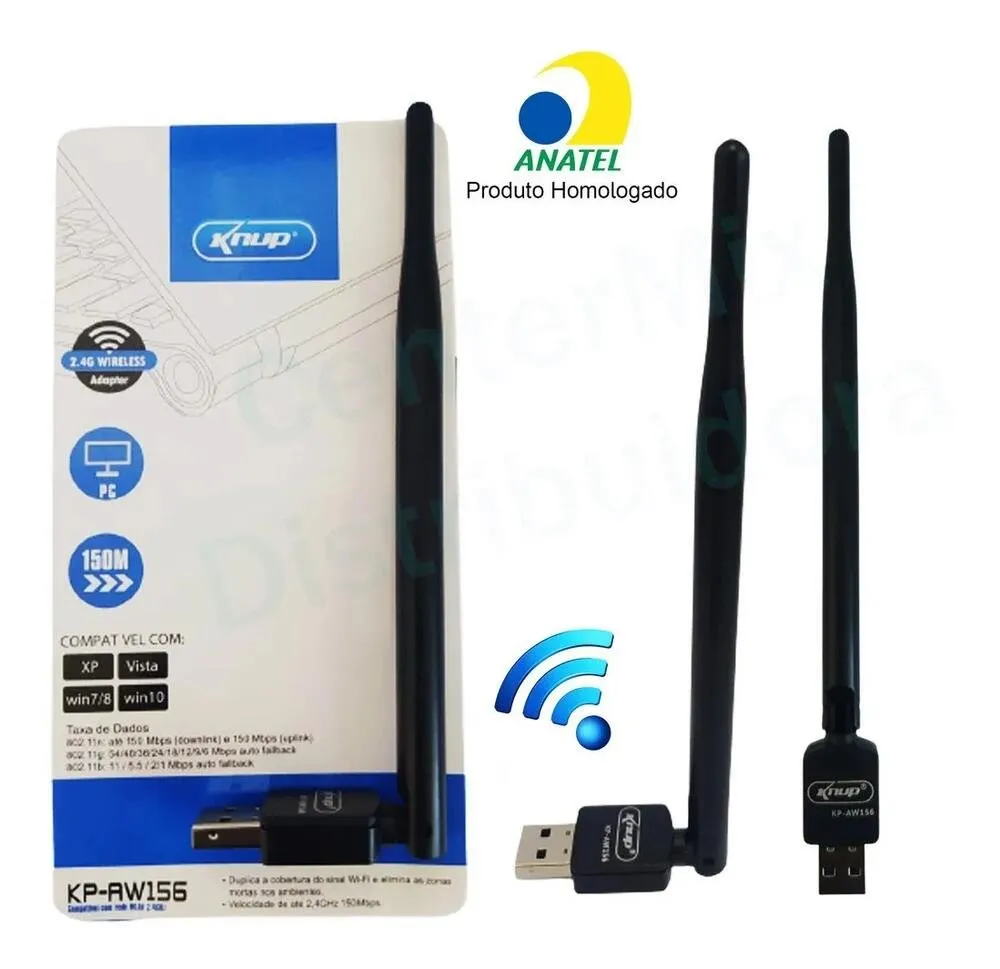 1 × Adaptador Wireless USB Knup KP-AW156 com antena externa