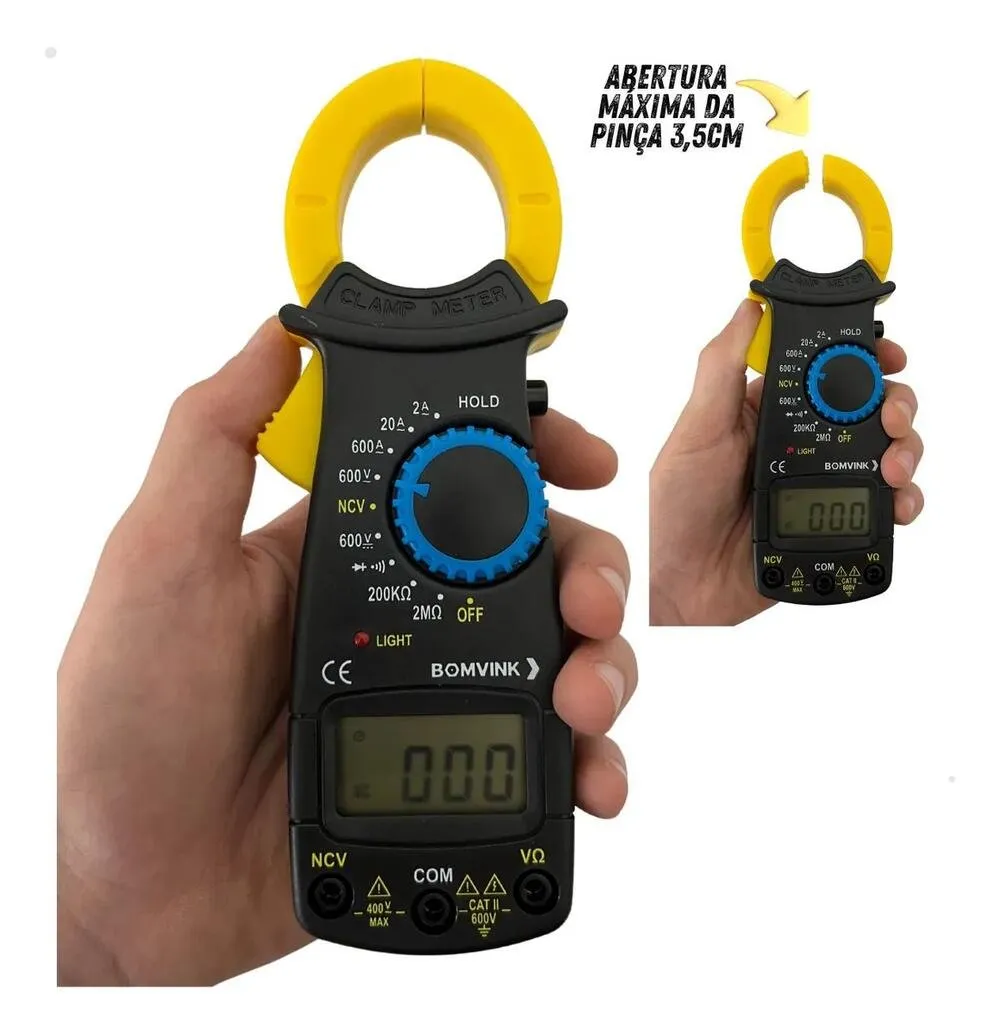 O Alicate Amperímetro Digital Bomvink BOM-6004 é uma ferramenta essencial para eletricistas e técnicos que buscam segurança, precisão e praticidade nas medições elétricas. Com capacidade para medir corrente até 600A e tensão até 600V, atende aplicações residenciais, comerciais e industriais leves.