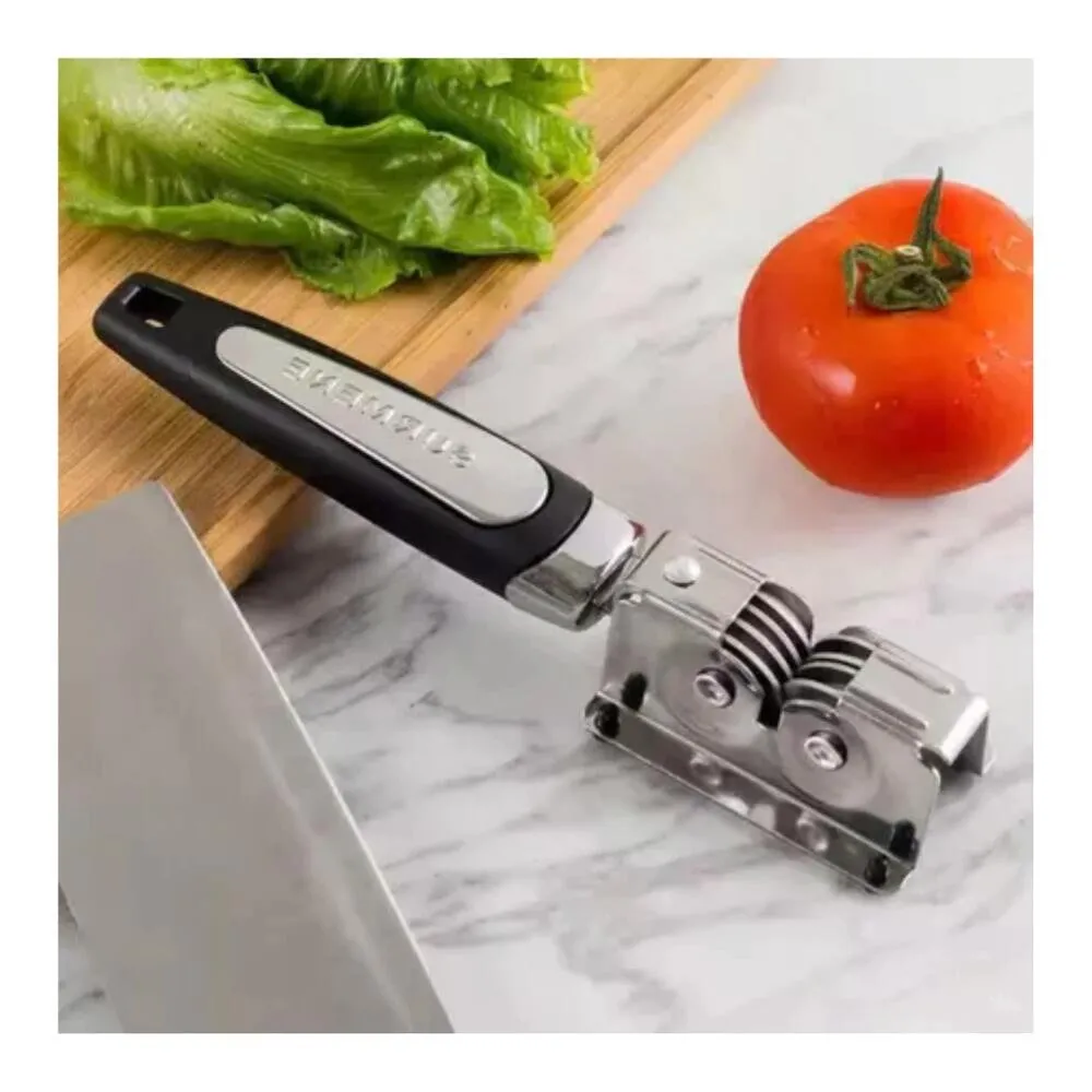 Fabricado com material resistente, o amolador oferece ótima durabilidade e desempenho contínuo, sem a necessidade de eletricidade. Um acessório indispensável para quem busca eficiência e praticidade na cozinha.