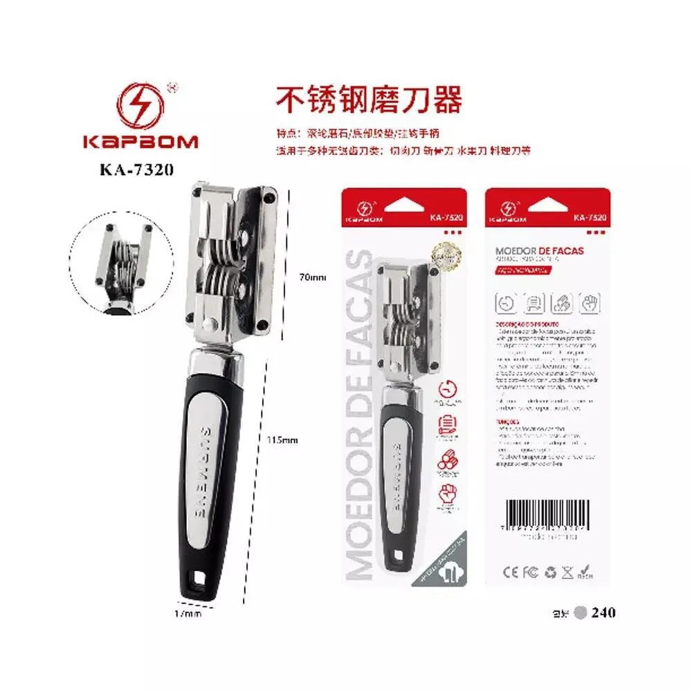 O Amolador de Facas KAPBOM KA-7320 é a solução ideal para manter suas facas sempre afiadas com praticidade, segurança e eficiência. Desenvolvido para facilitar o dia a dia, ele permite recuperar o fio da lâmina em poucos segundos, garantindo cortes mais precisos e seguros.