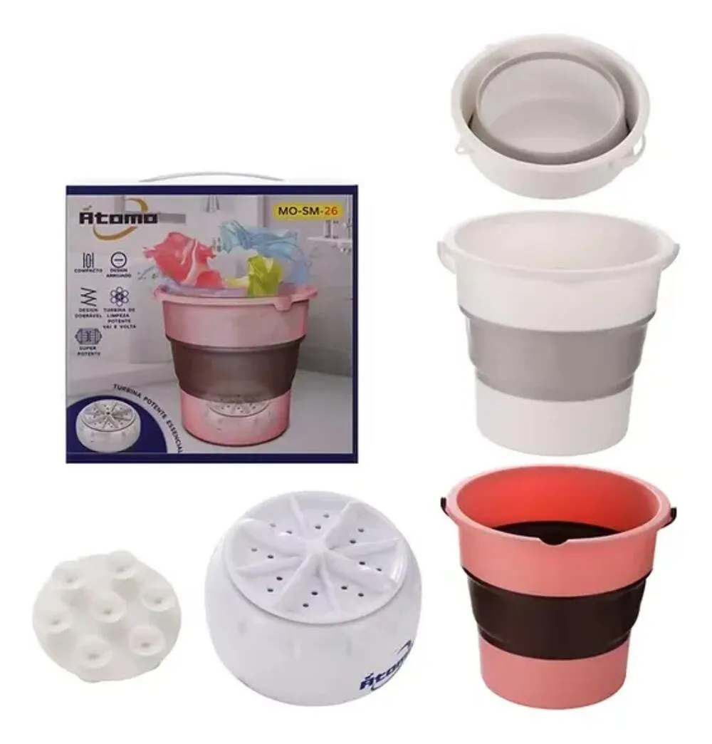 Ideal para lavar roupas, transportar água, auxiliar na limpeza doméstica, uso em camping, viagens ou pequenos espaços como apartamentos e lavanderias compactas. Seu design portátil facilita o transporte e o manuseio.
