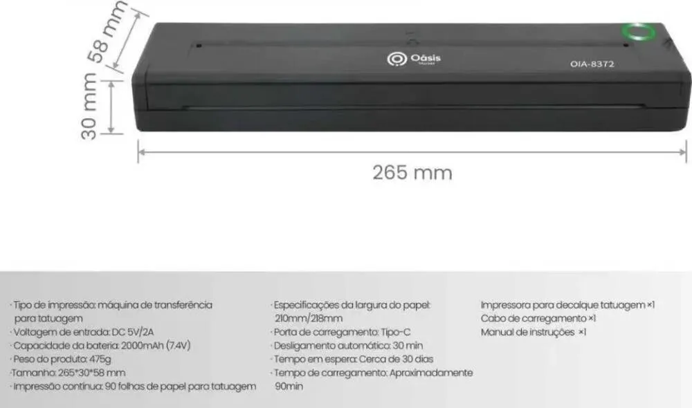 Impressora Para Decalque Tatuagem Oasis Oia-8372